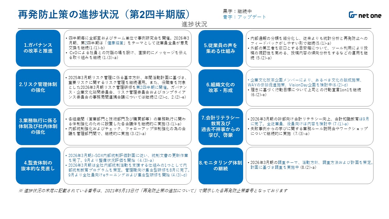 2024年10月31日時点の再発防止策の進捗状況は以下のとおりです。