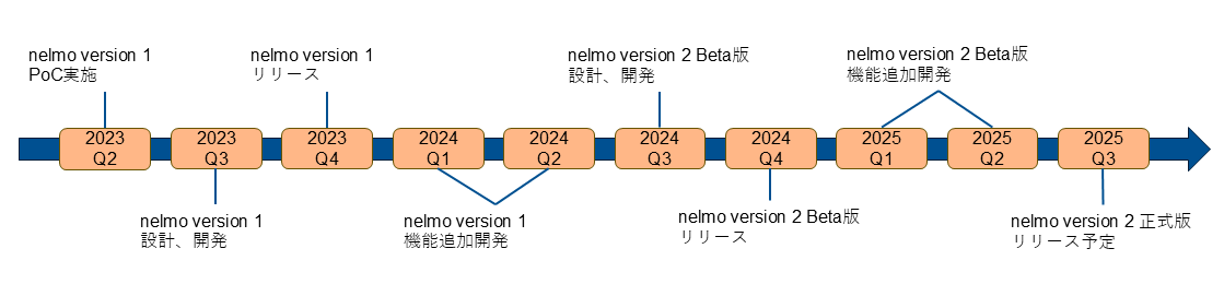 そこで得られた知見を踏まえ、全社展開を見据えたアプリケーションとして、有志を募って開発を進め、2023年第3四半期に「nelmo version 1(nelmo v1)」をリリースしました。