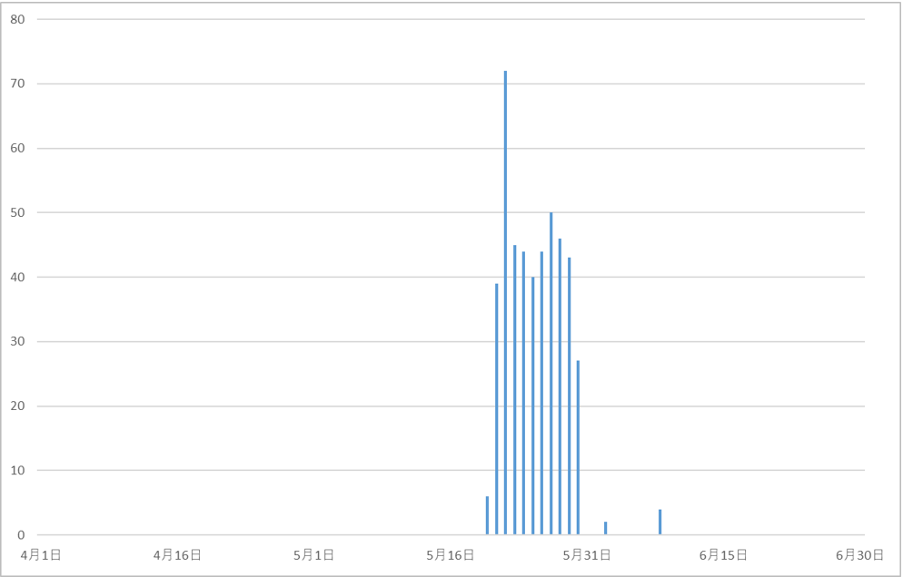 2024年7月に本脆弱性が公開されたあと、しばらくはNetOne-SOCで検知しませんでした。しかし、2025年5月にCISA(Cybersecurity and Infrastructure Security Agency)のKEVカタログ(※1)という実際に悪用されたことが確認できた脆弱性のリストに追加されたことや、SonicWall社のSMA(Secure Mobile Access)で稼働しているApache HTTP Serverで悪用が可能である記事が公開された(※2)ことにより、数十件検知することになりました。