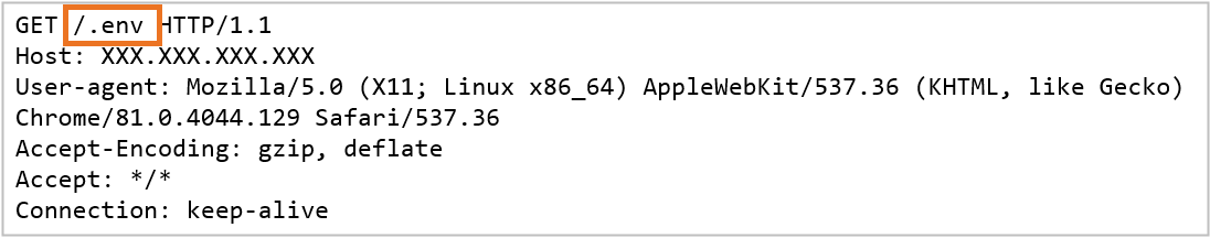 Androxgh0stの特徴のひとつである、.envファイルを対象としたスキャン通信を確認しました。.envファイル内の資格情報が窃取されると、AWSの管理コンソールに対する不正アクセスや新規ユーザーの作成などの被害を受ける可能性があります。