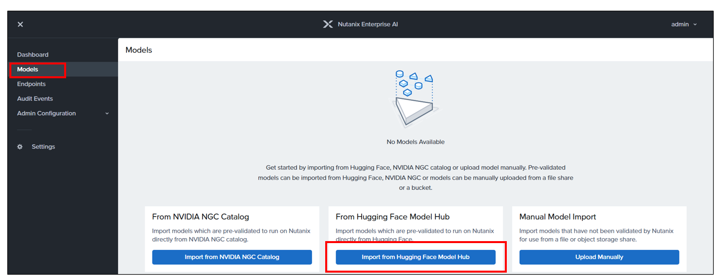 2. LLMについて、Hugging Face、NVIDIA NIM、または手動を選択の上インポートする