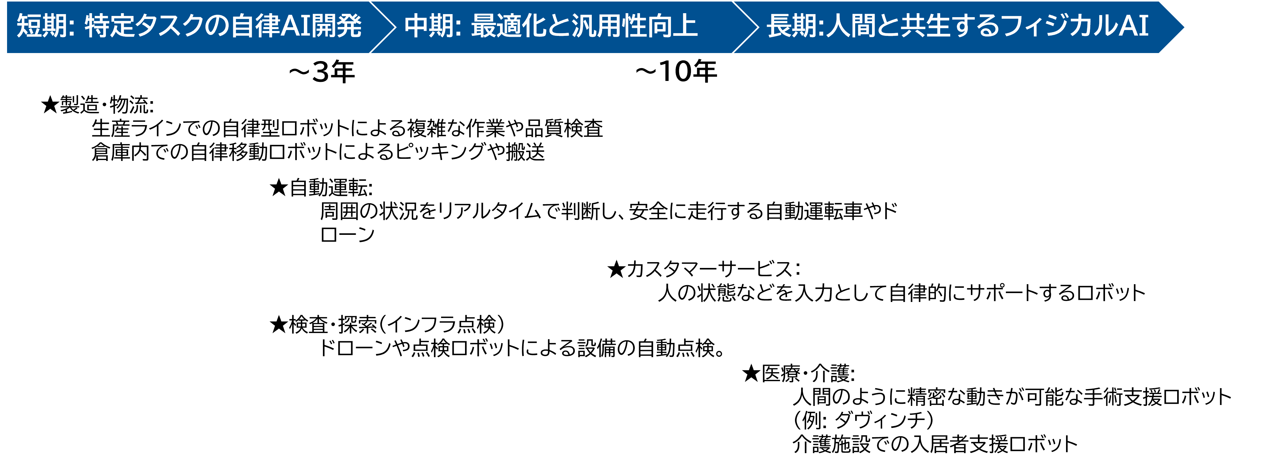 さらに、物理世界で人の動きや意図、環境を自律的に理解して行動する、仮想空間のアバターやロボティック・エージェントに関する実証や事例も登場しています。こうした流れを受け、次のステージとしてフィジカルAIの時代が到来すると見込まれます。