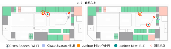 また、Juniper と Cisco では利用目的が異なるため、AP の配置や密度も異なっています。そのため、完全に同一条件での単純な比較検証はできません。