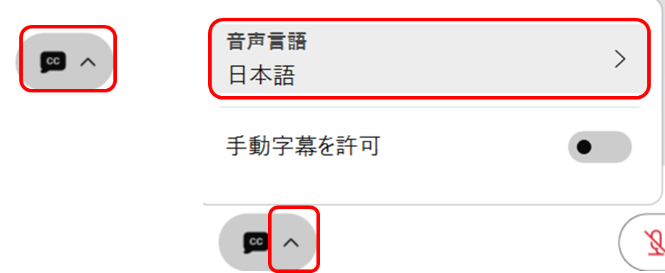 ミーティングウィンドウ左下にある「cc」のマークをクリックして字幕表示をオンにすると、会議中の発言をリアルタイムでAIが文字起こしし、画面下に字幕として表示してくれます。昨年から日本語の字幕表示も無償でできるようになり、今まで以上に活用しやすくなりました。日本語で文字起こしをするには、主催者が音声言語を日本語に、参加者は表示言語を日本語にすることで可能になります。