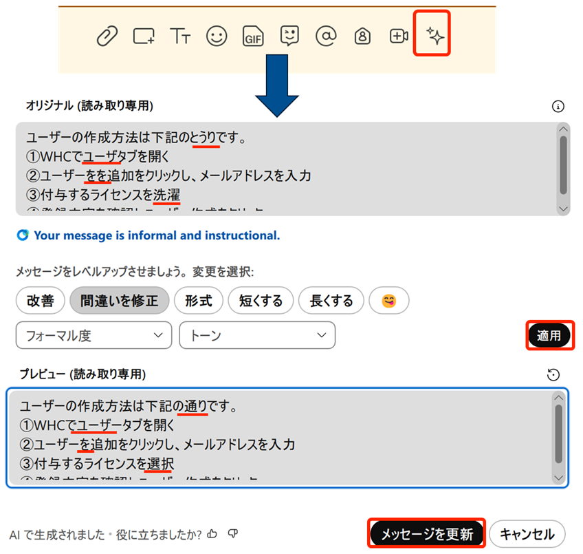 ②送信前のメッセージを「添削・推敲」