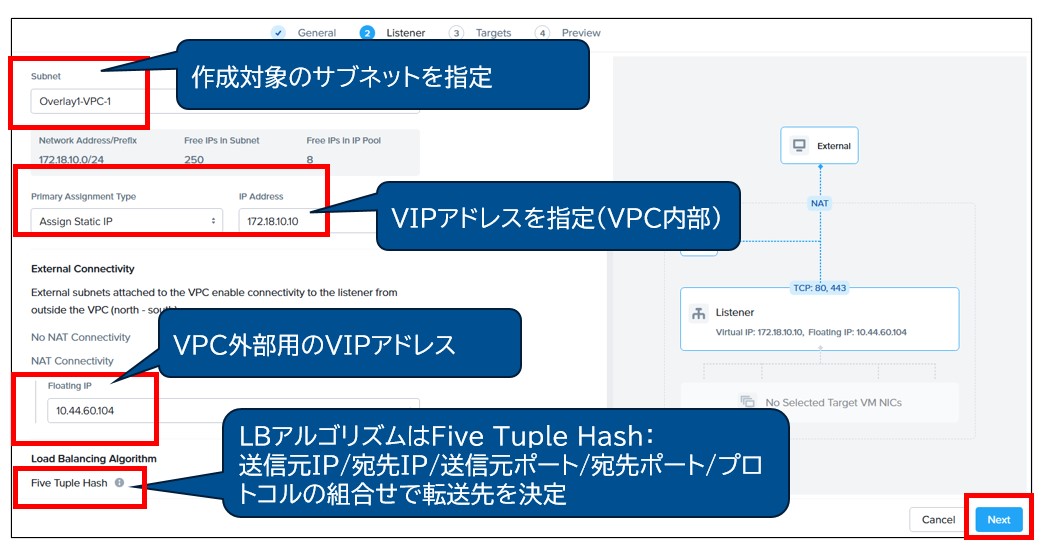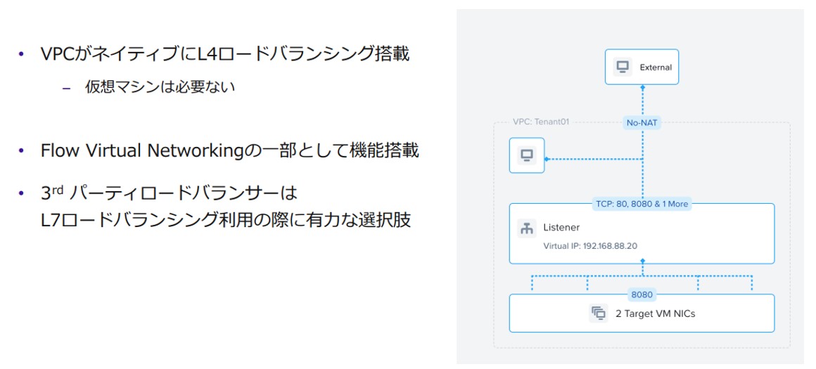 Flow Virtual Networking ではL4ロードバランサー(NLB)を利用できます。以下の構成にて検証を実施しました。