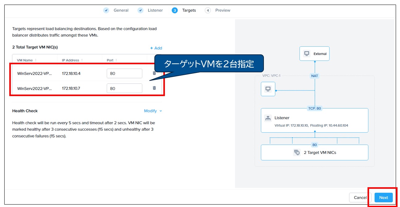 - 2台のWebサーバをバックエンドに登録の上、VIPを設定