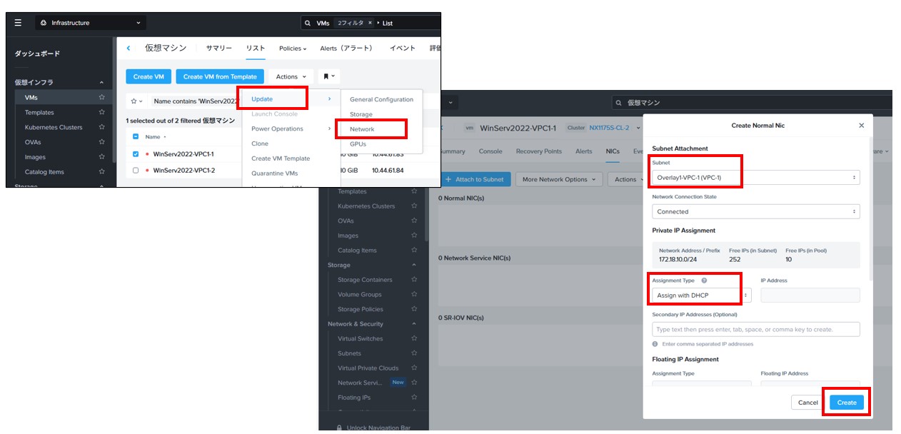 VMのオーバーレイへの接続:VMをシャットダウンの上、オーバーレイサブネットに接続する。