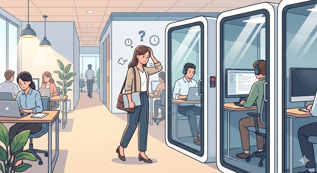 利用データの蓄積: どのブースが、どの時間帯に、どのくらいの時間使われているかを定量化し、将来の什器選定やレイアウト変更の強力なエビデンスにします。