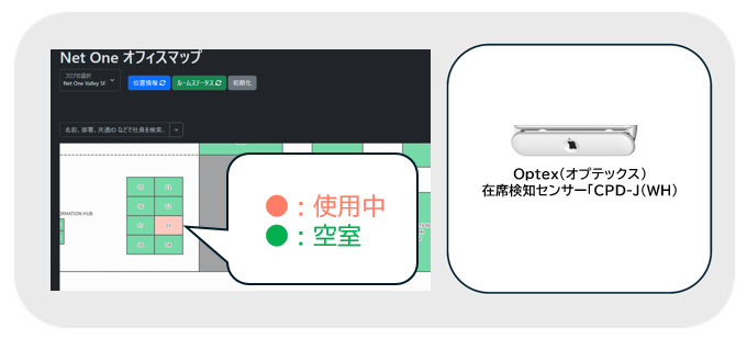 図3.Net One オフィスマップと在席検知センサー「CPD-J(WH)」