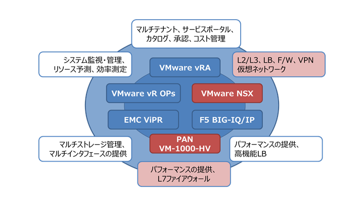今回はSDDCを構成する要素の内、下図にあるVMware NSX、PAN VM-1000-HVの特徴と、それぞれの要素間の連携についてご紹介します。