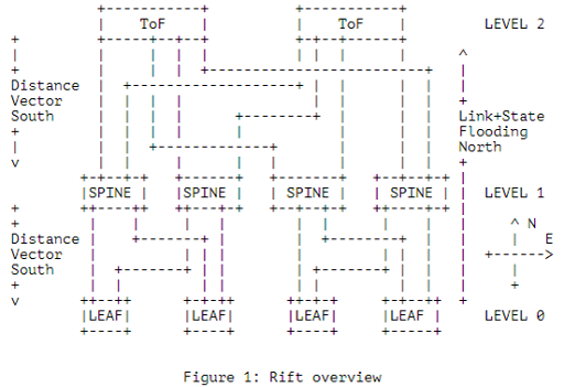 図1:RIFT概要の図(引用:draft-ietf-rift-applicability-00) |