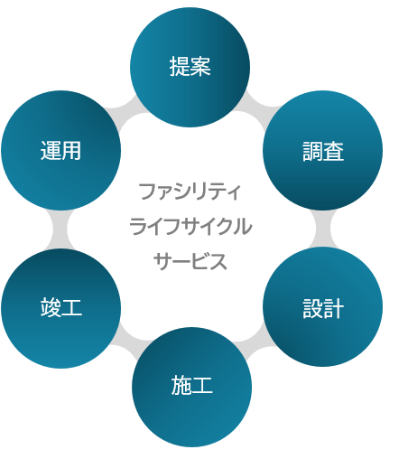 提案から運用・メンテナンスまで、ファシリティのライフサイクルをトータルサポートします。