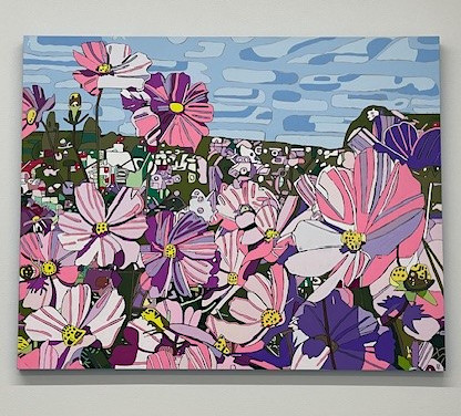 障がいがある方々の才能を伸ばし、社会との接点を支援する株式会社パソナハートフル様が運営する「アート村」で活動しているアーティストによる描き下ろし作品を、イノベーションセンター内に展示しています。